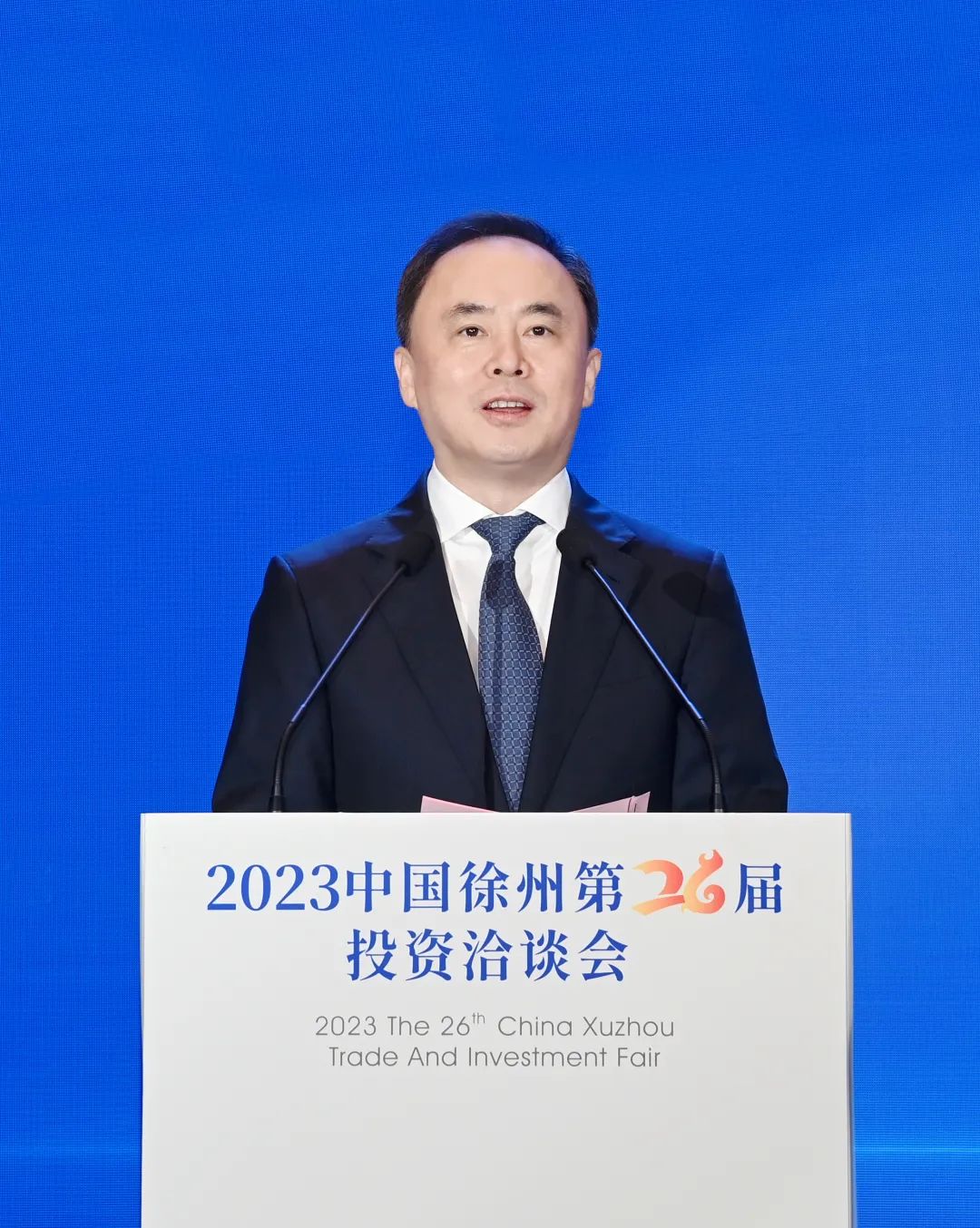 宋乐伟在致辞中说,徐州自古便是北国门户、南国锁钥,集散着八方物产,云集着九州商贾,书写了浓墨重彩的绚丽华章。从历史深处走来,一个更有活力、更具魅力的徐州,始终打开大门、张开双臂,迎接着四海高朋,拥抱着五湖宾客,携手阔步走向世界、走向未来。“大风起兮云飞扬”,传唱着徐州古韵悠长、人杰地灵,两汉文化根脉生生不息的壮美弦歌。走进徐州,一个个名胜古迹诉说的千年文脉,一段段动人故事演绎的鲜活历史,定能让您驻足感怀、流连忘返。“今朝又展千重锦”,诠释着徐州转型升级、活力迸发,现代产业集群蓄势崛起的时代潮涌。广大企业家融入徐州产业发展,必将赢得更多发展机遇、获得更多投资回报。“五省通衢达天下”,彰显着徐州开放包容、兼收并蓄,中心城市能级节节攀升的恢弘气象。广大客商来徐投资兴业,定能享受到更多发展红利、占据更大市场空间。“一城青山半城湖”,渲染着徐州山水交融、南秀北雄,幸福宜居画卷徐徐铺展的锦绣风华。徐州独特的山水之美、城市风光、烟火气息,将为八方游客和来徐投资的各界朋友献上一份难以忘怀的城市体验。宋乐伟表示,中国徐州投资洽谈会已连续举办26届,每一次的相逢,都让我们结识了很多志同道合的朋友,引进了一批前景广阔的项目。期待更多有识之士走进徐州、选择徐州,扎根这片发展热土。我们将以精心精细服务,让每位投资者和创业者都能获得丰厚回报、开创事业发展新篇章。
