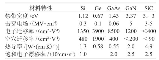 第三代半导体材料具有更宽的禁带宽度,更高的击穿电场、热导率、电子饱和速率及更高的抗辐射能力,更适合于制作高温、高频、抗辐射及大功率器件,通常又被称为宽禁带半导体材料(禁带宽度大于2.2eV),亦称为高温半导体材料。