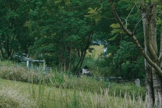 一旁的树林和草地郁郁葱葱单单在里面走一走