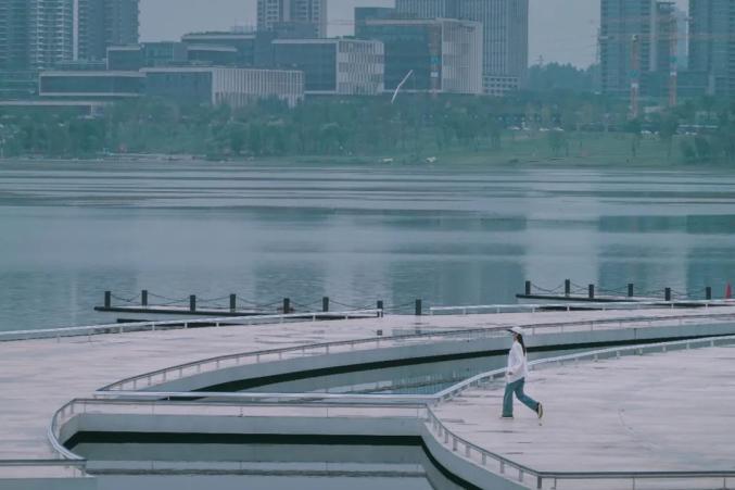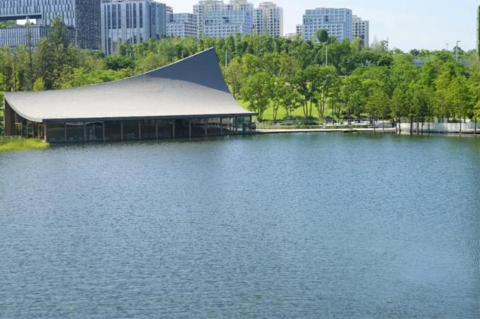 在湖畔路东段兴隆湖路演中心像一条巨型鲸鱼