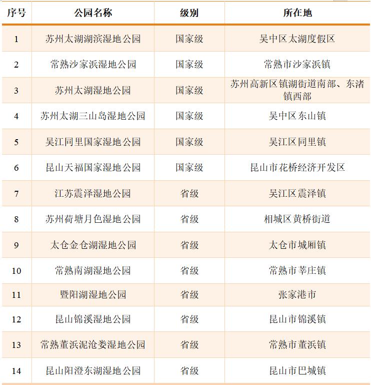 依据条例,苏州公布《苏州市级重要湿地名录》,将认定的102个重要湿地纳入其中,各市、区也相继公布一般湿地23个;按照湿地类型,划定长江、太湖、阳澄湖等湿地保护小区113个,先后建成各类湿地公园21个,明确湿地范围和界线,设立湿地界标,做到分级分类管理。