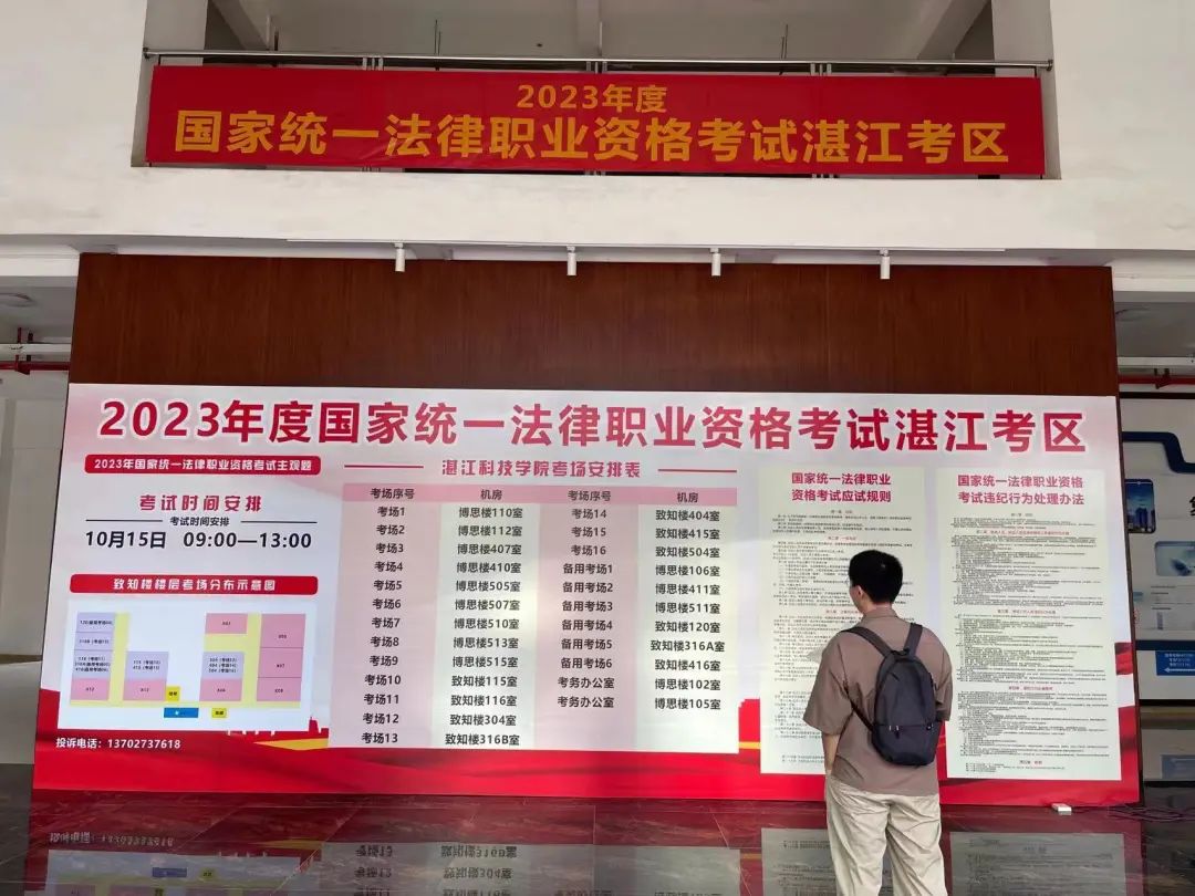 10月15日13时,2023年度国家统一法律职业资格主观题考试顺利结束,近千名考生在湛江考区参加考试。考试地点设在湛江科技学院(新湖校区),考场共设16个正式考场,6个备用考场。