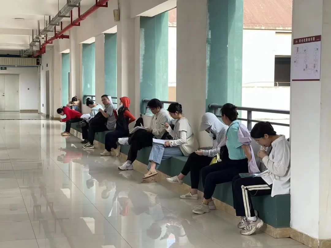 考前考生争分夺秒抓紧时间复习↑
