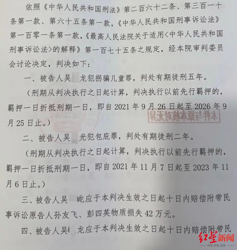 10月13日,深圳市南山区人民法院对被告人吴某龙拐骗孙卓和符建涛、吴某光包庇案作出一审公开宣判,以拐骗儿童罪判处吴某龙有期徒刑5年,以包庇罪判处吴某光有期徒刑2年。