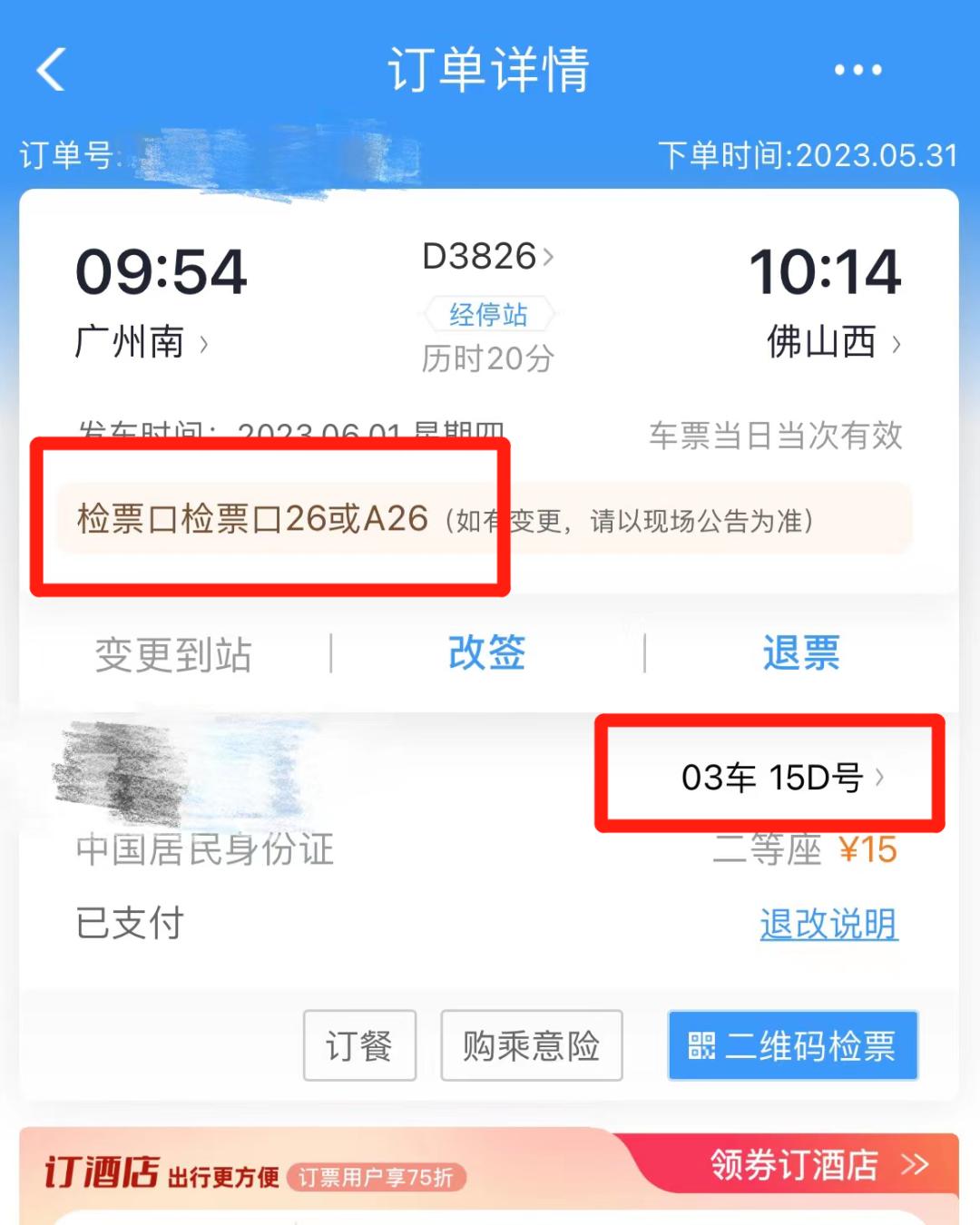 已支付—未出行订单—点击座位详情—查看右上角检票口