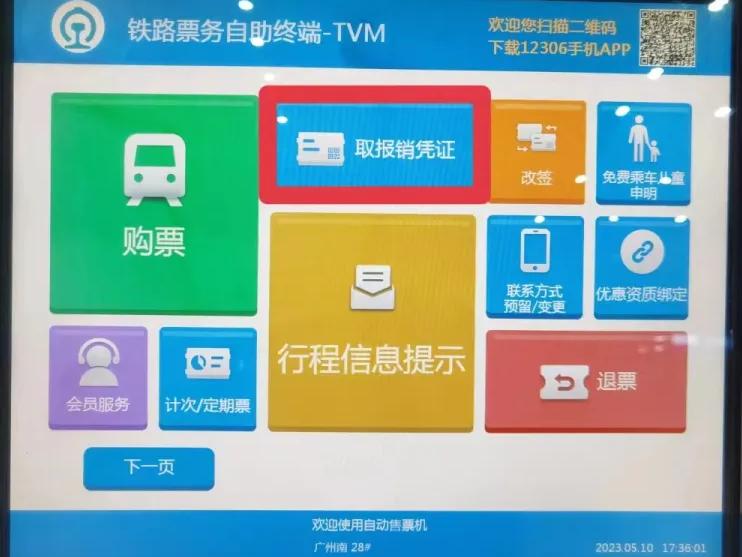 也可以提前在自助取票机上点击取报销凭证—点查看右上角检票口信息