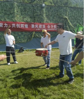 “鼓动人心”:每个队友牵着一条连接着鼓的绳子,控制鼓面来颠球,至少完成颠球100次的目标,用时最短的小组获胜。“驿站传书”:不用说话的方式传递一串神秘的阿拉伯数字。