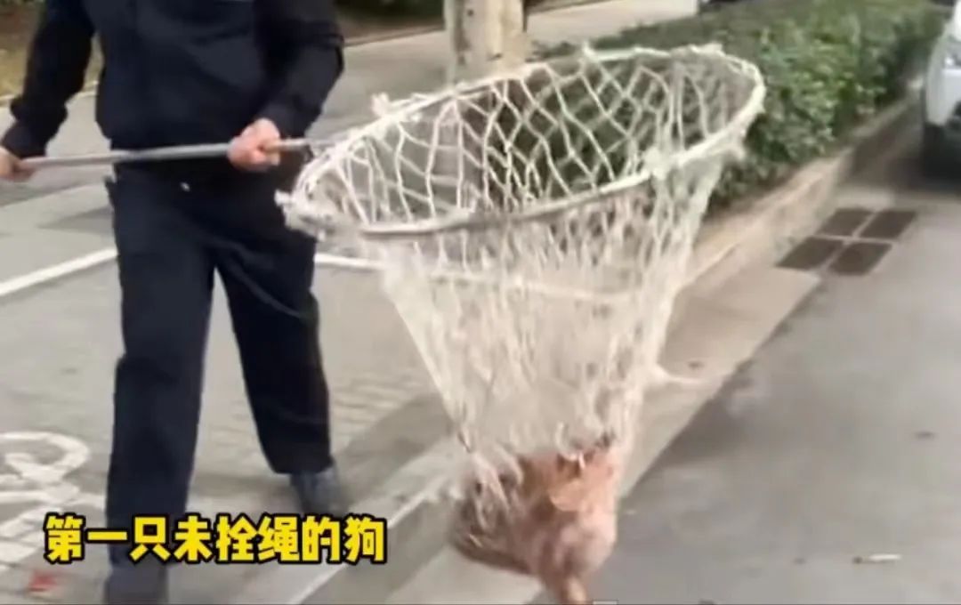 第一只未拴绳被抓的狗的主人称:“从楼梯出来就找不到它了。还没得拴它就跑出来了。”第二只被抓狗的主人则辩解称“我这还没出门”。