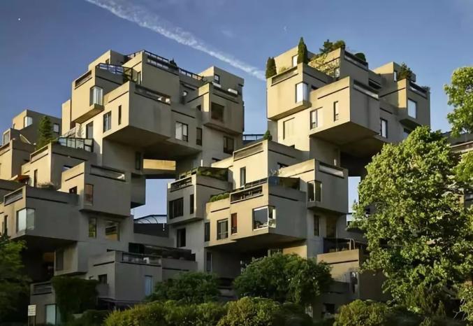 ©James BrittainHabitat67由重复的预制水泥单元块堆叠而成,每个单元块构成的房间都配有独立的花园和模块化厨房。这种建筑模式是一次探索:如何使用新兴的科技在人群稠密的城市里创造出一个人们向往的郊区生活环境,这个建筑既要对自然环境友好,也需要足够合乎人们的理想,而且要在群众的经济能力范围之内。