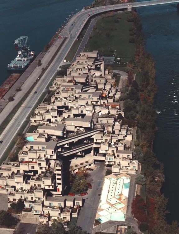 © (2001) Canadian Architecture Collection, McGill University最开始,Habitat 67仅是麦吉尔大学学生摩西·萨夫迪(Moshe Safdie)的一个理论项目,后来在1967年蒙特利尔世博会中,萨夫迪提交了这个理论项目,然后被选中作为了世博会的住宅区。由于争议和工期的拖延,“Habitat 67”只建成了158套住房,所幸世博会结束后也没有被完全拆除,354个混凝土“盒子”得以保留下来。