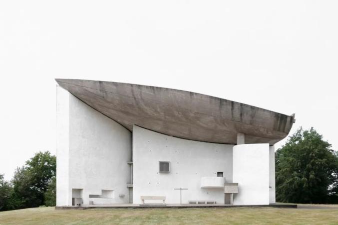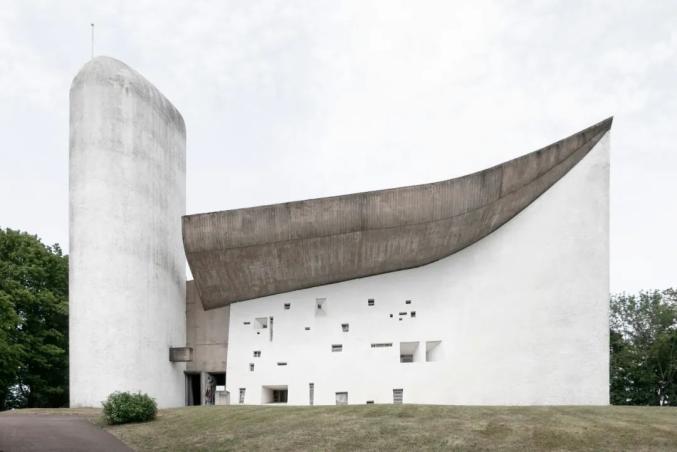 建在一个罗马天主教朝圣地之上,它巨大的弧形外墙上覆盖有贝壳似的屋顶,墙上有小天窗使得光能打入教堂内部,它的设计代表着建筑师的作品由线条明晰的居住机器(比如萨伏依别墅)转换到具有雕塑感的特定场所设计。