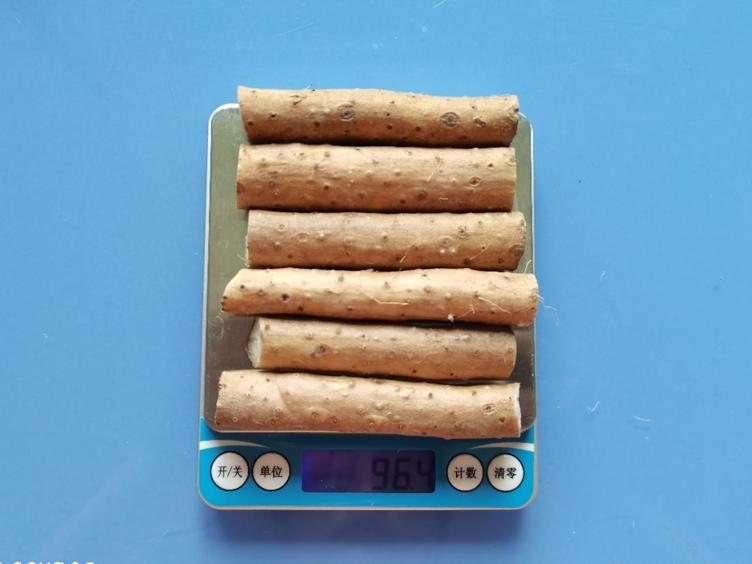手指粗细、中指长度的山药6根约100克。图片来源:作者