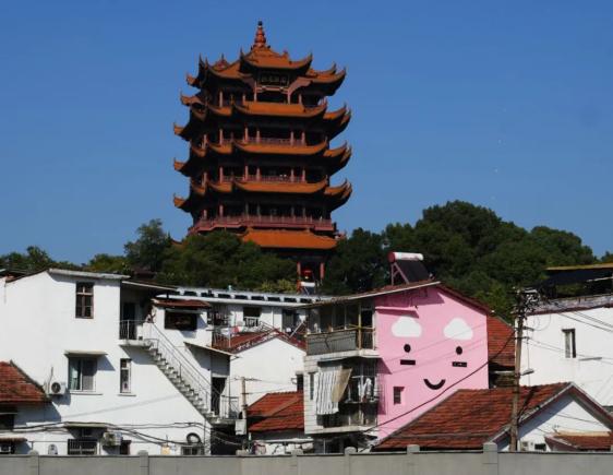 为吸引更多市民和游客了解武昌古城的历史文化和换个角度打卡黄鹤楼,社区特意打起了墙的“主意”,并与涂鸦爱好者沟通,与位于八卦井遗迹和黄鹤楼中间的相关住户协商,才有了眼前这一幕。