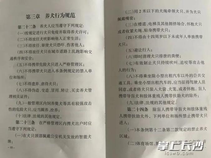 《长沙市养犬管理条例》关于养犬行为规范方面的部分内容。