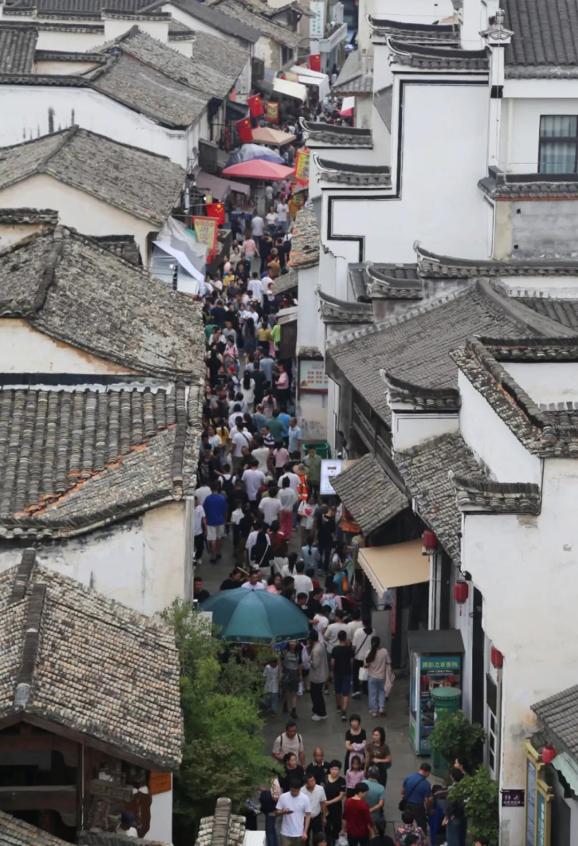 国庆期间,游埠古镇人头攒动,每天客流量均数以万计。