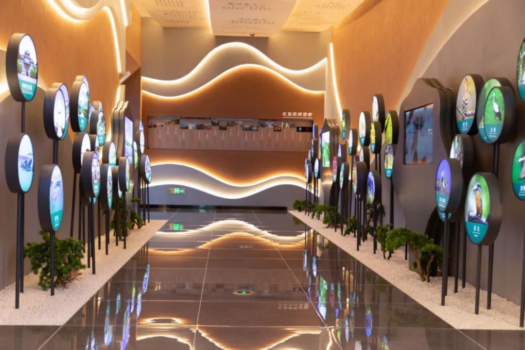 左右滑动查看更多梁子湖生态文明馆按照世界湖泊大会永久会址的定位,历时数年耗资3亿元打造而成,集湖泊生态展示中心、旅游集散中心、特色商品展销中心于一体、 同时兼顾办公会议需求。远看外观,“圆”与“方”的简洁几何造型,让整个场馆的外立面呈现波光粼粼之感;步入馆内,拾级而上共有三个独立展示区,分别展示梁子湖生态文明史、梁子湖湿地生态系统科普和两山发展排头兵等内容。