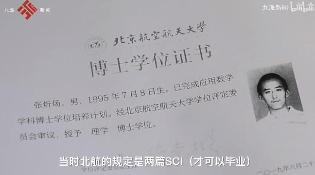按北航的规定,发布2篇SCI才可以毕业。2017年,张炘炀在读博6年后发出第一篇,次年发出第2篇,终于赶在2019年毕业。因为论文,他耽误了几年时间。