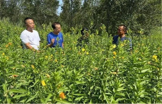 六家子镇达林稿村村民孙贵臣(左一)查看月见草长势。除了传统种养殖产业,库伦旗还将生态发展和旅游产业相结合,规划沙漠景区6.5万亩,其中库伦旗银沙湾景区占地面积5.3万亩,总建筑面积17万平方米,是目前我国东北地区最大的沙漠旅游区。依托山水林田湖草沙全要素自然条件,在这里可以尽享蓝天白云、大漠风光,是驰名区内外的自驾车旅居车营地和旅游休闲度假区。“沙漠、蓝天、草地、溪流同时出现在一个画面里,非常震撼,感觉到大自然和人类力量的角逐。”是很多游客游览库伦银沙湾时的真实感受。