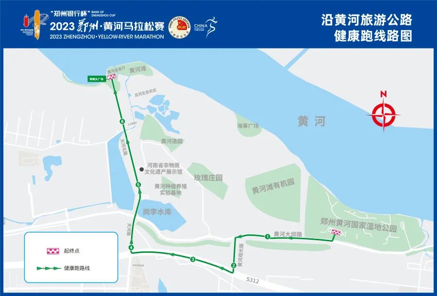 沿黄旅游公路健康跑沿黄旅游公路健康跑采用全新设计的新赛道,起点位于郑州黄河国家湿地公园,终点位于南裹头广场,广大跑友可以近距离感受黄河魅力、体验黄河文化,比赛将于29日8:30正式开始,共有1000人参加。