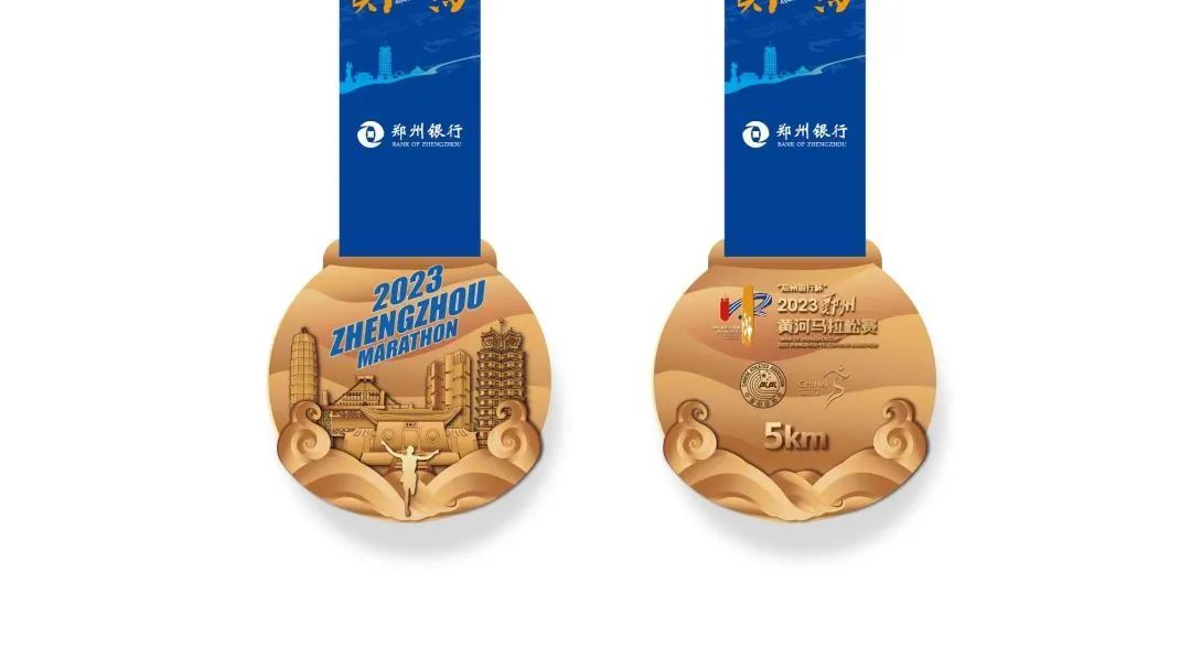 奖牌设计既体现了郑州深厚的历史底蕴,也不乏曼妙的人文风光。其中,马拉松、半程马拉松项目的完赛奖牌采用“开合造型”,将流传千年的“姓氏文化”和城市地标建筑剪影相结合,加上饕餮纹和兽面纹的点缀,层次分明,设计立体。同时,为彰显郑马“姓氏马拉松”的赛事品牌,今年奖牌依然延续了历年磁性贴片的“传统”,选手们可在完赛后领取自己的姓氏磁贴,从而拥有一块自己专属的、独一无二的郑马完赛奖牌;