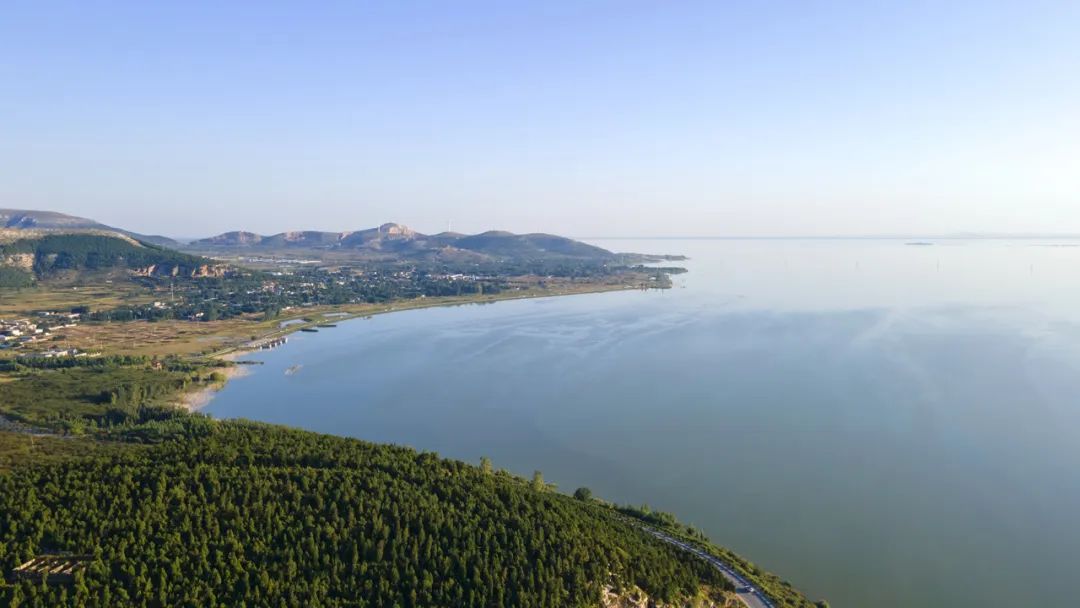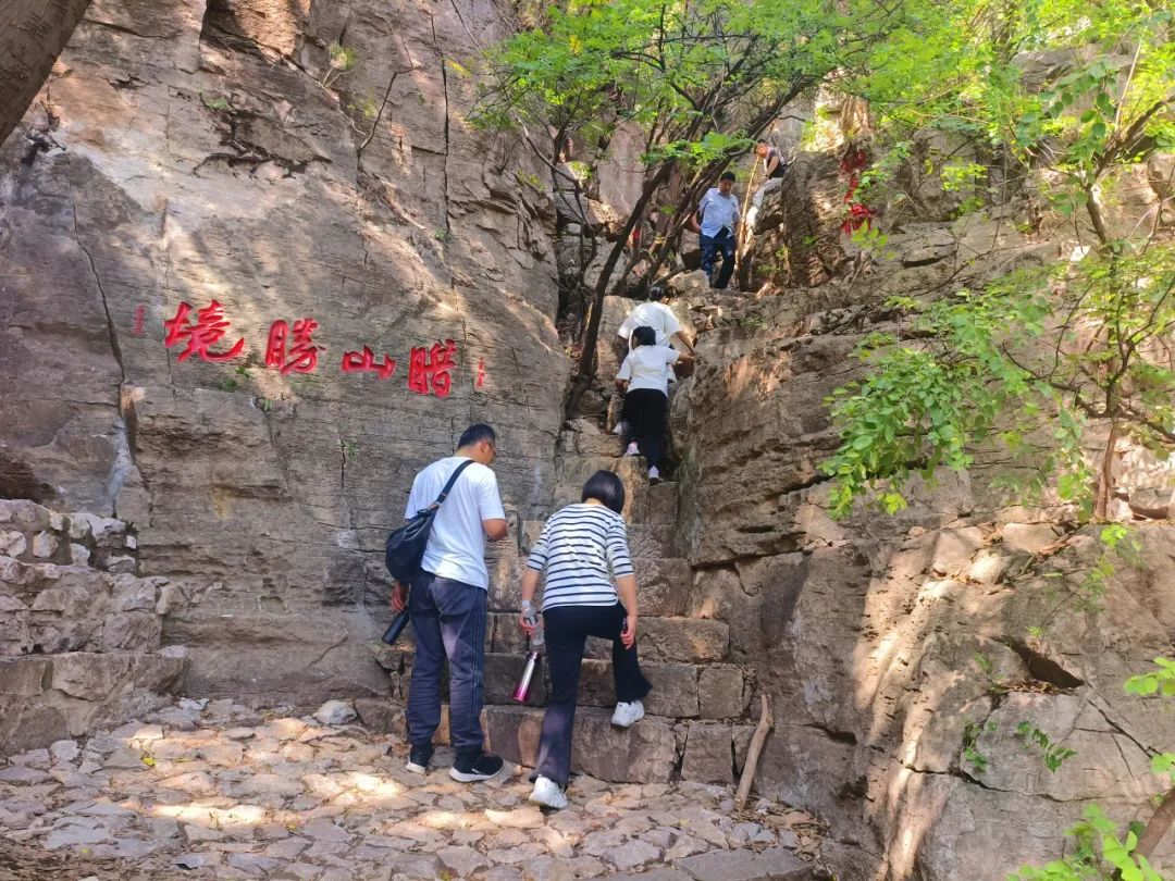 沿着腊山的蜿蜒小道,尽情攀爬,山势逐渐陡峭,但每一步都值得。登上山顶,纵览山川美景,腊山与东平湖相连,湖水如碧玉般清澈。秋日的湖面波光粼粼,山水相映,构成了一幅美丽的画面。