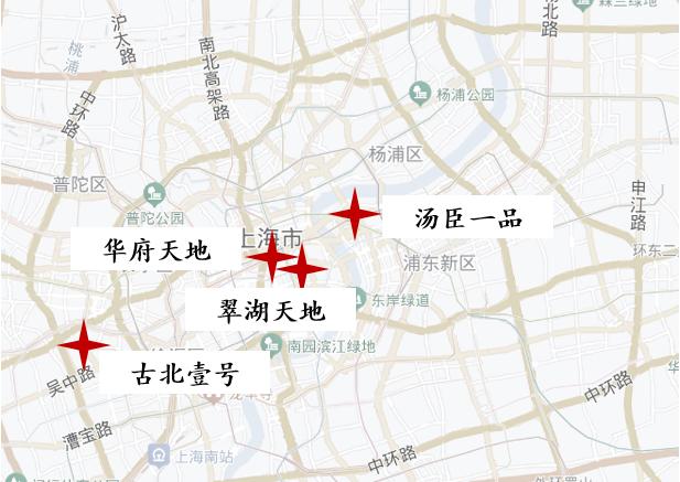 华府天地、古北壹号、翠湖天地、汤臣一品