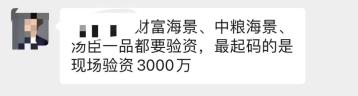 而且要双重验资,去看房前先截屏验资,预约好时间后,现场需要再次打开验资确认同样需要验资的,财富海景花园、中粮海景壹号、古北壹号,最起码都是现场验资3000万以上