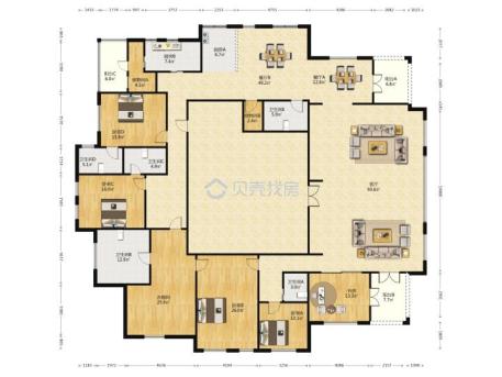 采用“回”字户型设计,所有的公共区域,客厅、餐厅、中厨西厨、书房加在一起就有200平左右