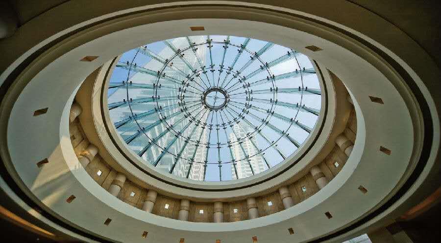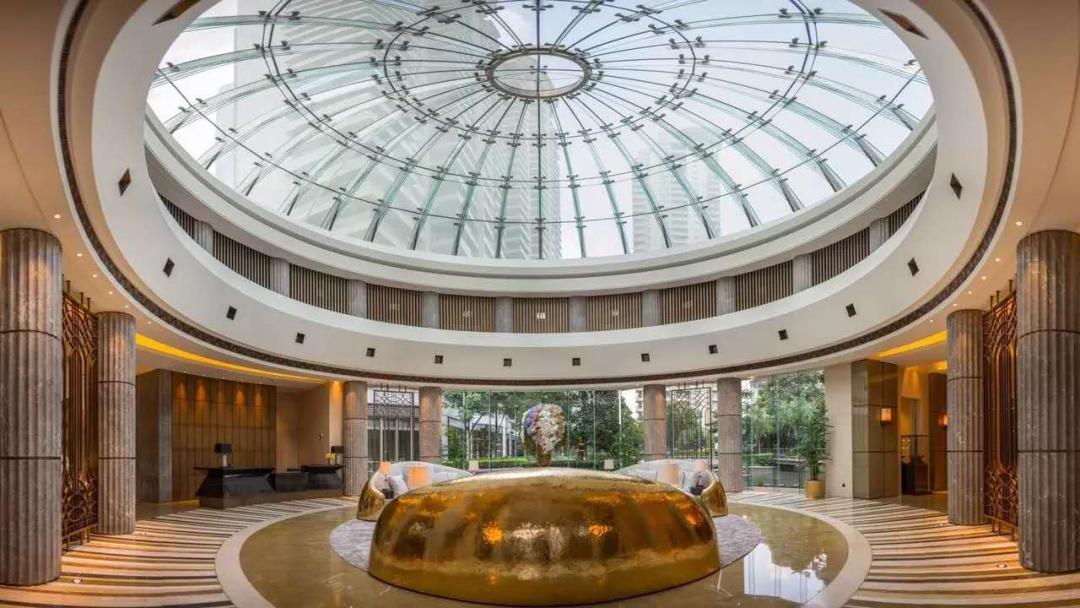 在汤臣一品大堂的顶部有这样一个高12.7米、直径16米的穹顶