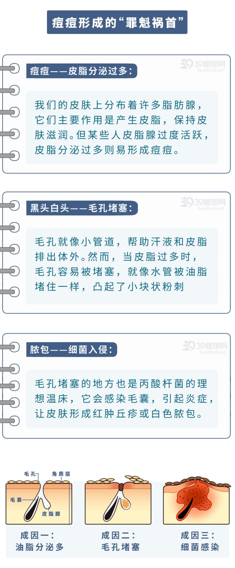 而长不长痘,其实跟有没对象没多大关系。痘痘的形成原因错综复杂,其中最常见的是以下几种: