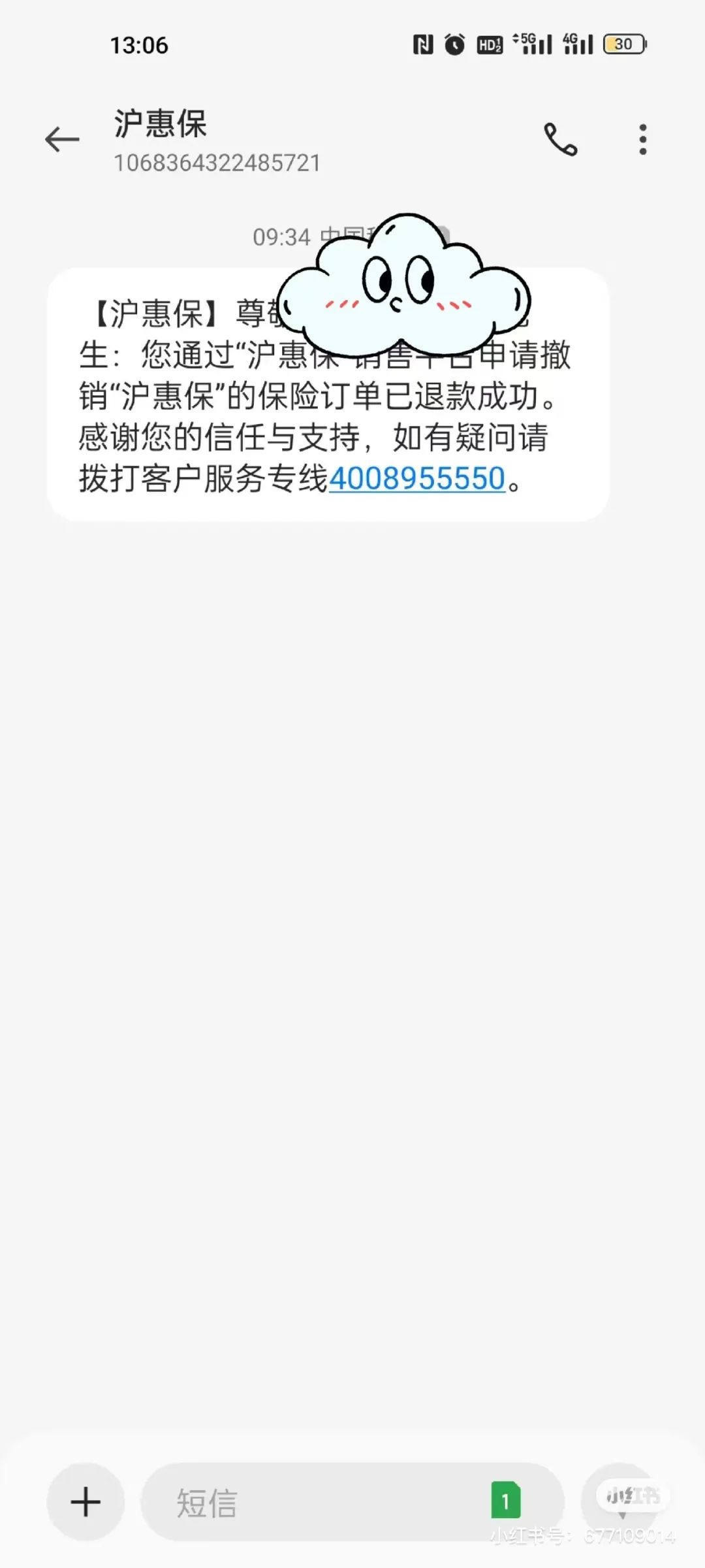 且退款的短信通知
