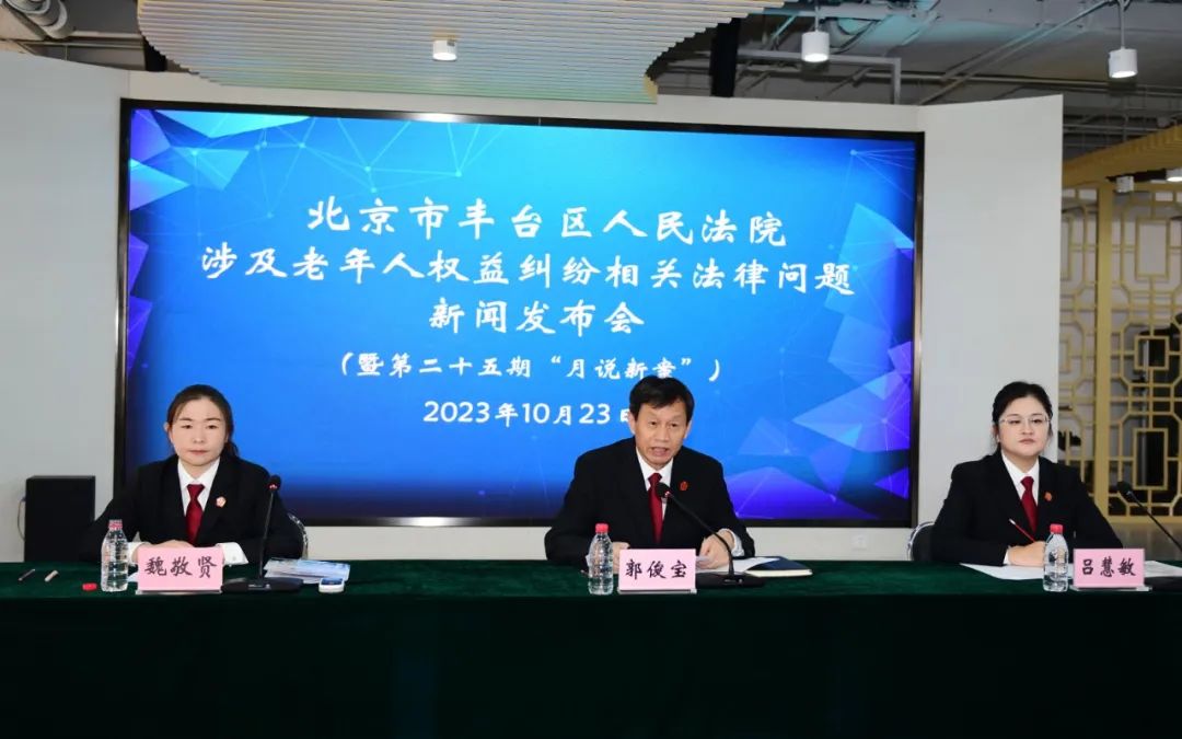 10月23日重阳节当天,丰台法院召开第二十五期“月说新案”新闻发布会,发布该院近三年来涉及老年人权益保护案件审理情况、典型案例及该院方庄人民法庭探索建立的爱老护老新枫桥法庭工作经验做法,展现该院积极回应老龄化社会发展需求的司法实践。