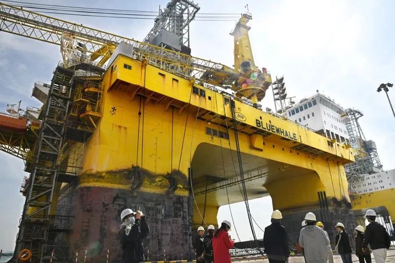 图片来源:©新华社 李紫恒摄10月18日拍摄的“蓝鲸1号”平台