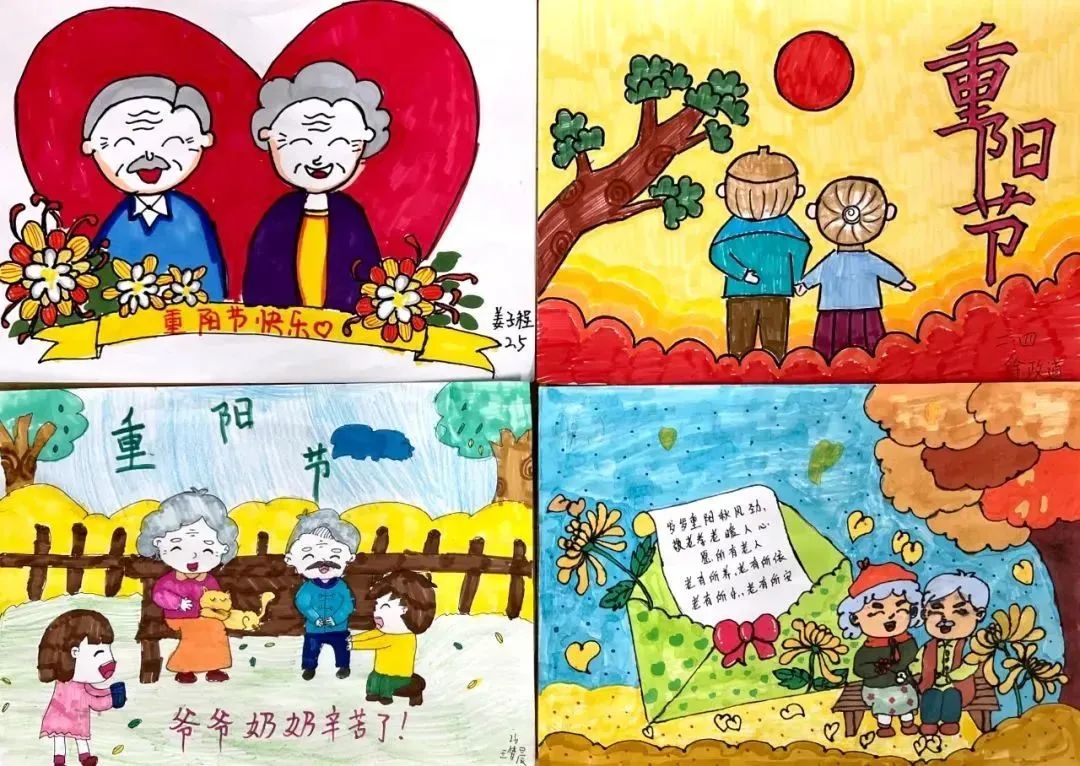 彩笔描绘出一幅幅精美的画面,用文字书写出一首首温馨的古诗。真情流露,用简单却真挚的方式传递了对老人的爱与尊敬。老少同乐贺重阳