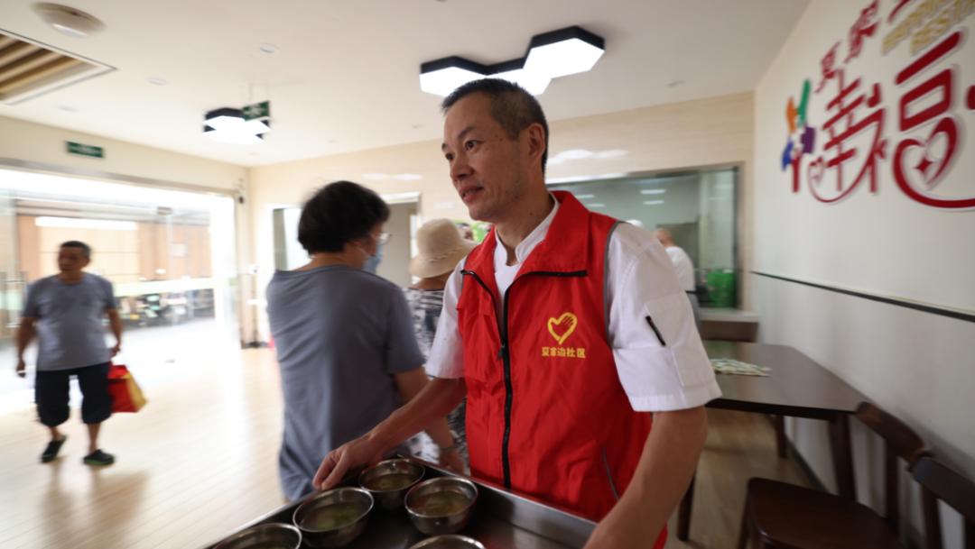 辖区有90余位老年人用餐,并由专人为腿脚不便的10余位老人提供送餐服务。幸福餐厅每日提供午餐,四菜一汤,价格优惠。每日,老人会带着餐具早早来到餐厅闲话家常,多数老年人会选择将餐打包回家。
