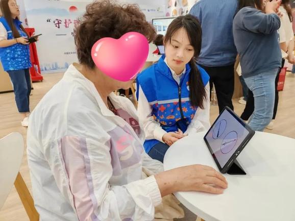 据上海织生科技有限公司产品研发负责人王思涵介绍,AI眼动脑健康筛查技术是太保蓝公益基金会联合复旦大学附属华山医院神经病学研究所和织生科技共同打造的国内首个多维度的脑健康AI早筛模型,也是国内首创集风险因素、AI眼动客观评估、量表主观评估“三位一体”的精准早筛新模式。“脑健康状态和眼部运动有着高度关联。” 王思涵表示,“经过2分钟的认知风险因素评估和5分钟的AI眼动客观评估,老人们就可以查看自己的健康报告了。”