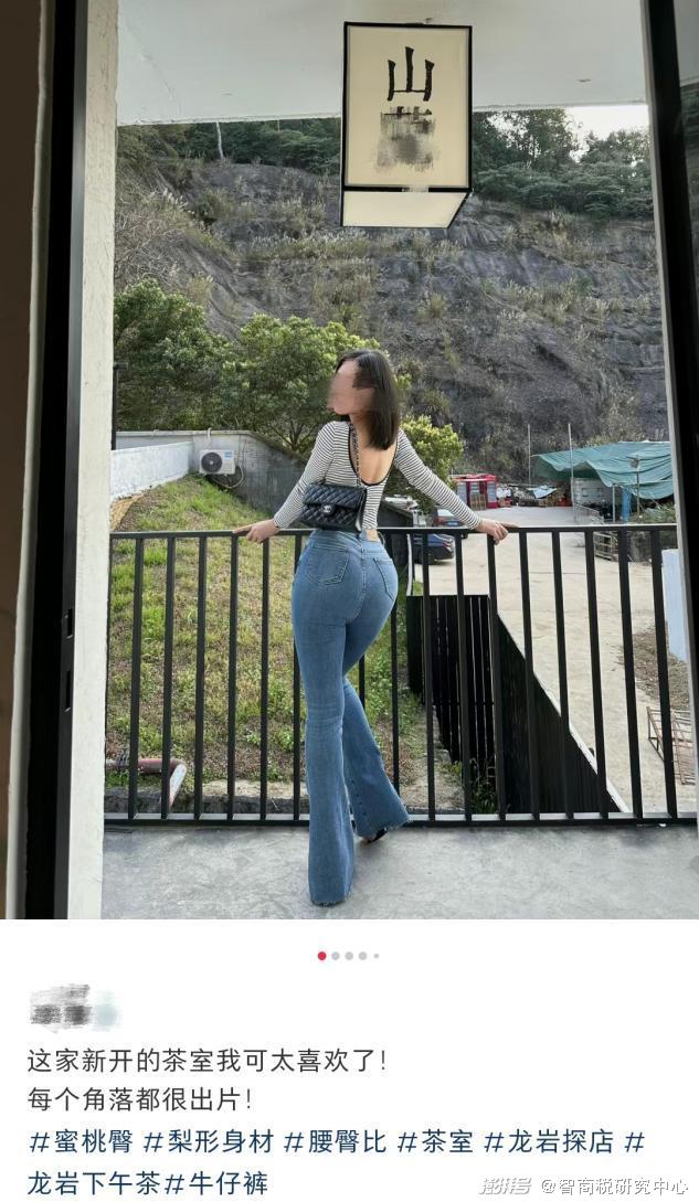 不仅如此,还有一些博主,只展示前凸或者后翘,蜜桃臀和蚂蚁腰,哪个夺命晒哪个;还有些博主,梨型身材与大长腿同在,让自己成了大长梨。
