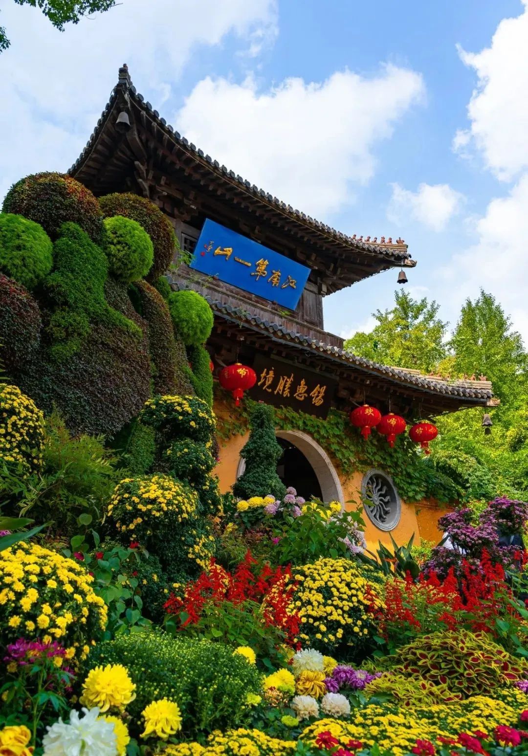 期间将有来自北京、上海、重庆、南京、杭州、成都等全国近50个城市齐聚惠山古镇,集中展示各个城市的菊花品种及城市独特文化。室外城市展台景点气势宏大、制作精美,将带来强烈的视觉享受。猜猜下面这些,都是哪些城市的展位呢?