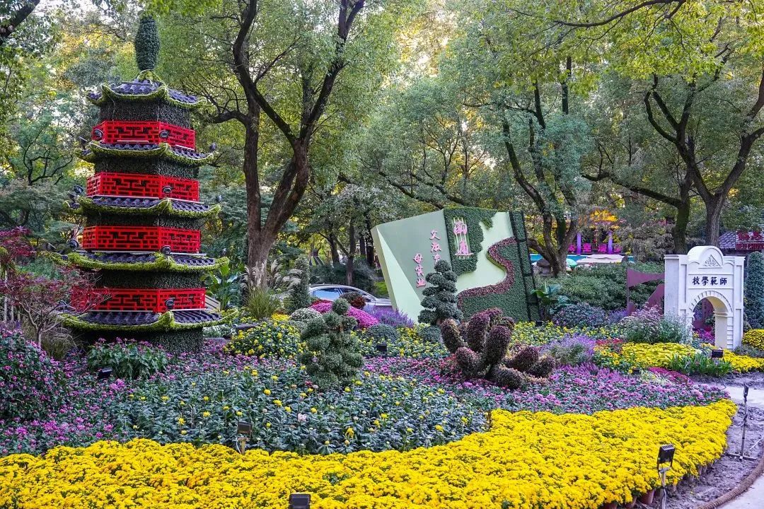 作为本次全国菊展分会场,梅园景区目前已完成所有景观氛围布置,使用菊花数量多达一万余盆,新增八处景观小品,分布景区主干道位置。