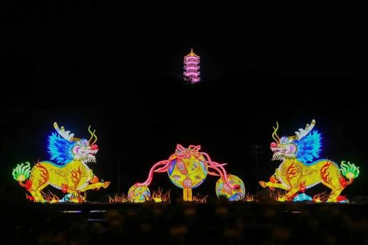 菊展期间,惠山古镇首创“夜赏菊花”夜公园模式,特别引入国家级非物质文化遗产自贡灯彩,精心打造了“山海经”特色主题6大瑞兽系列,同时通过激光投影等技术带来前所未有的视觉呈现,将夜间的锡惠公园打造成为一部浓缩版的千年无锡文明史。