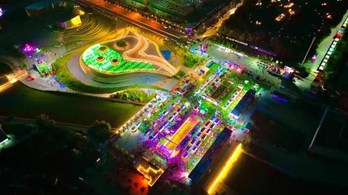 悦来河文化旅游休闲街区整体规划总面积约88万平方米(约1325亩),主要沿悦来河两岸,东至库伦路、南至青龙山大街、西至创业大道、北至清河大街,东西涵盖悦来河ABCDE段跨距约3公里(其中12座场馆东西长1.5公里),南北涵盖胜利北路欢乐河岸商业街及人工河两侧、牧人公园、城市展览馆、科尔沁王府井。通过构建“一心、一核、一带、五片区”的空间布局,形成通辽文旅产业“主动脉”。街区融合多元的文化特色、丰富的自然风光、沉浸式的美食体验、丰富刺激的现场互动,打造集文化购物、休闲娱乐、特色餐饮为一体的现代夜经济聚集地。