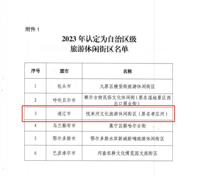 内蒙古自治区文化和旅游厅、发展改革委员会依据《旅游休闲街区等级划分》(LB/T 082-2021)《中华人民共和国乡村振兴促进法》《内蒙古自治区乡村旅游重点村镇名录建设工作方案》等标准,认定了2023年自治区级旅游休闲街区和自治区级乡村旅游重点镇(村),通辽新增1家自治区级旅游休闲街区和1家自治区级乡村旅游重点村。