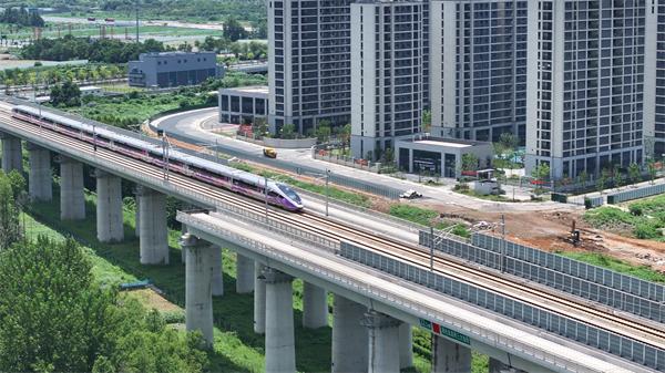 △亚运列车驶过良渚互通“我们整个项目团队共有80多名年轻人。”贾兴泷说,从2022年年初接手项目,到2023年9月下线,“为了打造这位‘江南美人’,我们在一起奋战了584天,期间24小时待命工作早是常态”。