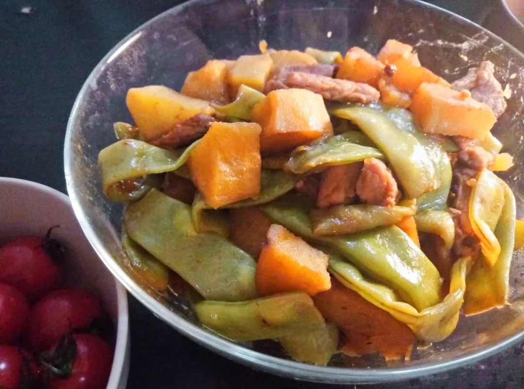 身为一个东北人,在家里做乱炖的时候,就喜欢把土豆换成地瓜,排骨油豆角和地瓜的组合,让这道菜的味道更丰富,咸鲜香浓中还带着一丝甜,后味无穷。