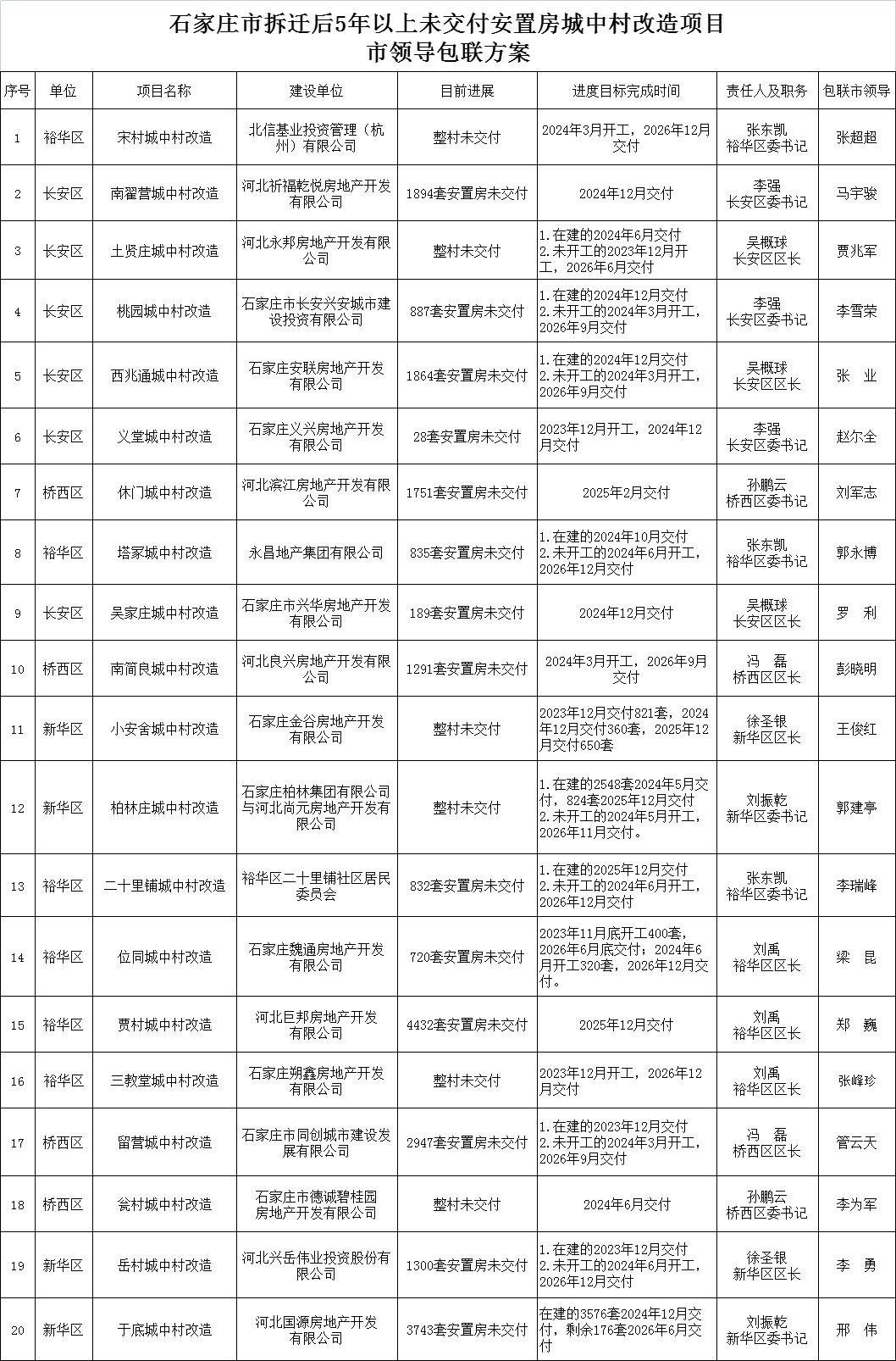 石家庄市拆迁后5年以上未交付安置房城中村改造项目市领导包联方案