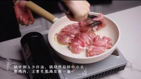1.用剪刀将鸡腿肉剪开去骨,两面加盐和胡椒粉腌制十分钟左右。