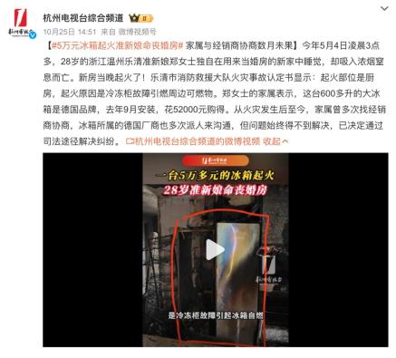 原标题:《5万元冰箱自燃,28岁准新娘命丧婚房,其家属应当如何维权?》