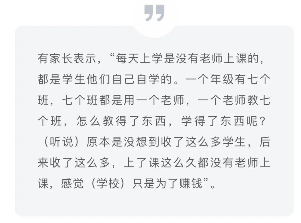 学校方面则表示,他们的办学条件符合要求,并不缺少老师,而是在推行数字化教学过程中出了问题,“我们的初衷是让学生学会自主学习,数字化也符合未来趋势,但该措施操之过急,而且没有与学生、家长进行充分的沟通,这一点也在改进。”