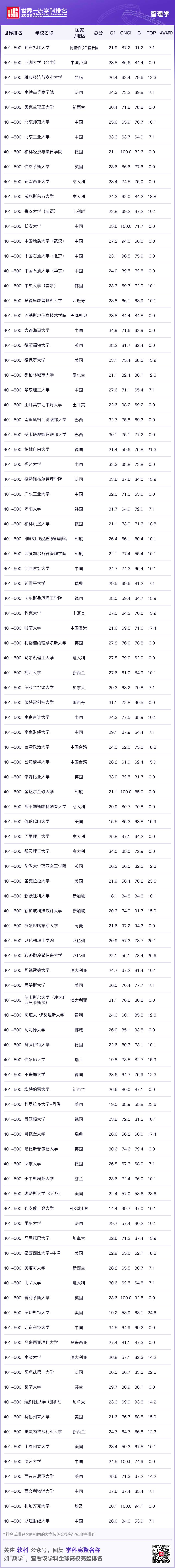 2023年10月27日,高等教育评价专业机构软科正式发布2023“软科世界一流学科排名”(ShanghaiRanking's Global Ranking of Academic Subjects)。2023年排名覆盖55个学科,涉及理学、工学、生命科学、医学和社会科学五大领域。此次排名的对象为全球5000余所大学,共有来自104个国家和地区的1900余所高校最终出现在各个学科的榜单上。