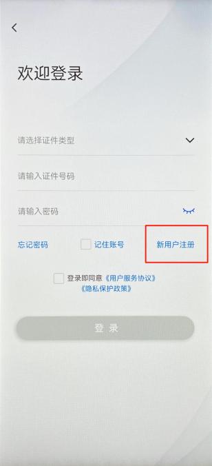 如果您之前未注册使用过“移民局”App或“移民局”小程序,请点击“新用户注册”。